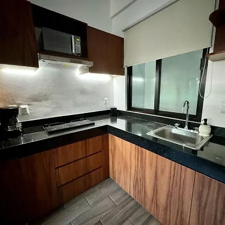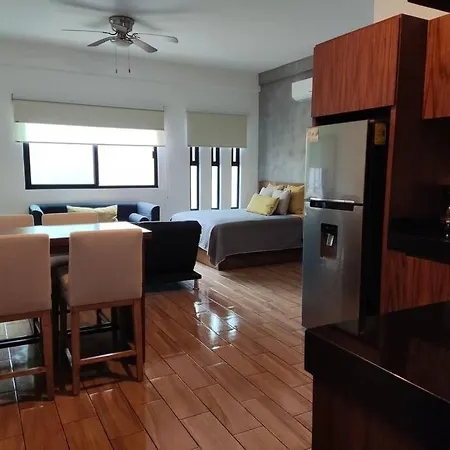 Estudio Cerca De La Playa Y Alberca Vista Al Mar ferielejlighed ligger 2 km fra Playa del Carmen og tilbyder infinity-pool. Beliggende i 5th Avenue kvarter, består denne strand- indkvartering af 1 værelser, 1 badeværelser og et fuldt udstyret køkken.